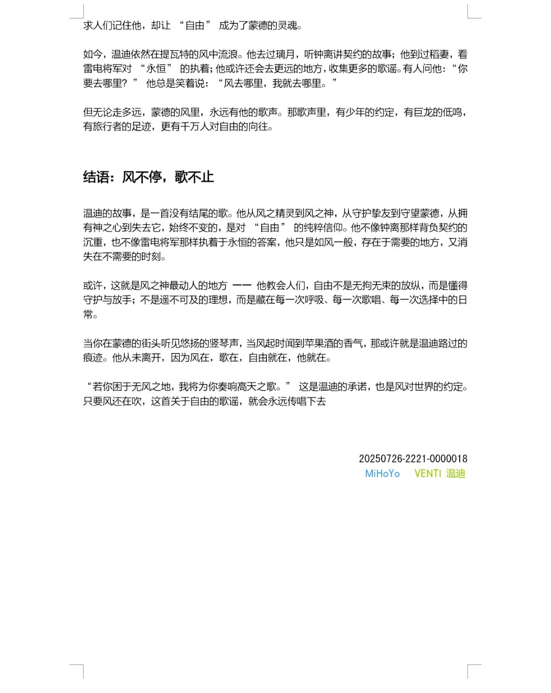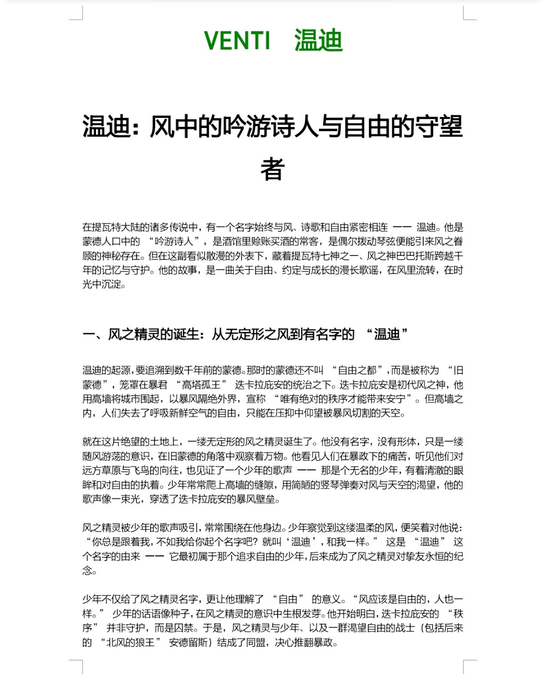 【人物传记】风神温迪:风中的游吟诗人于自由的守望者『原神篇』 墨韵inkHarmony 人类与社会 人类与社会 发布于:2025年7月28日 次浏览 字数:35 字 时长:1 分钟 MiHoYo-VENTI正文请看图2~6 图1、7、8截自百度,非原创 仅用于科普,无任何商业意图审核请过 我好像爱上了纸片人?🤔 凝风最近在崩铁里过匹诺康尼的剧情,那么其中有一个角色流萤就非常吸引我她飘逸的头发,灵动的眼睛,对开拓者的真诚都在打动我于是我深深喜欢上了这个二次元角色,忍不住地为她吃谷最终对我现实世界失望,灵... 【人物传记】芙宁娜:舞台与命运的交织之旅『原神篇』 正文请看图3-6 图1、7截自百度图2 截自酷狗概念版 仅用于科普,无任何商业意图审核请过
