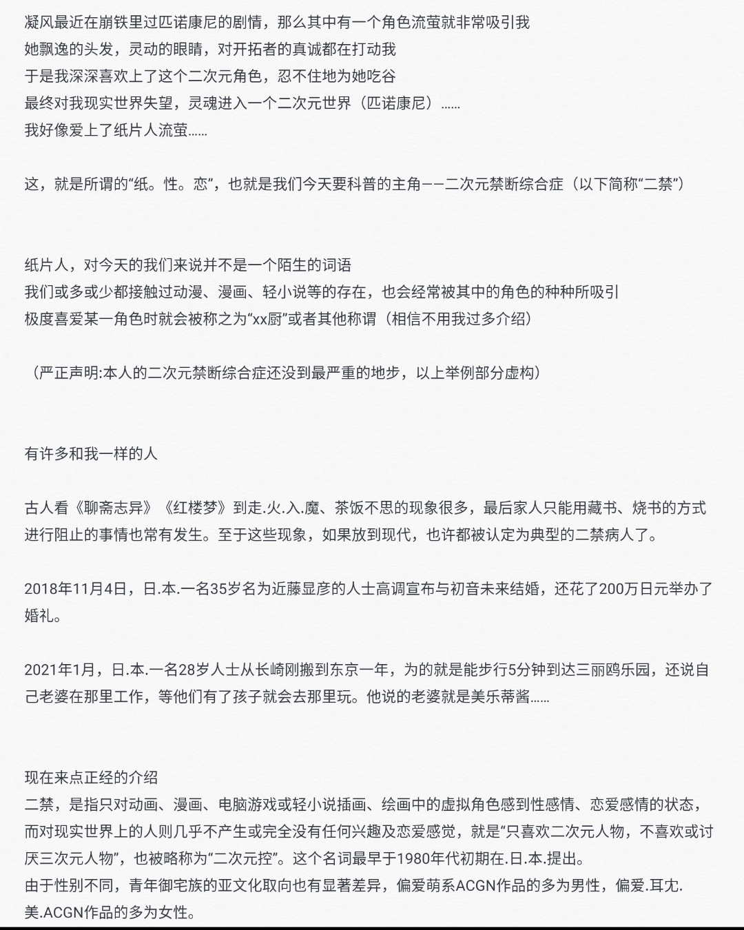 这,就是所谓的“纸。性。恋”,也就是我们今天要科普的主角——二次元禁断综合症(以下简称“二禁”)