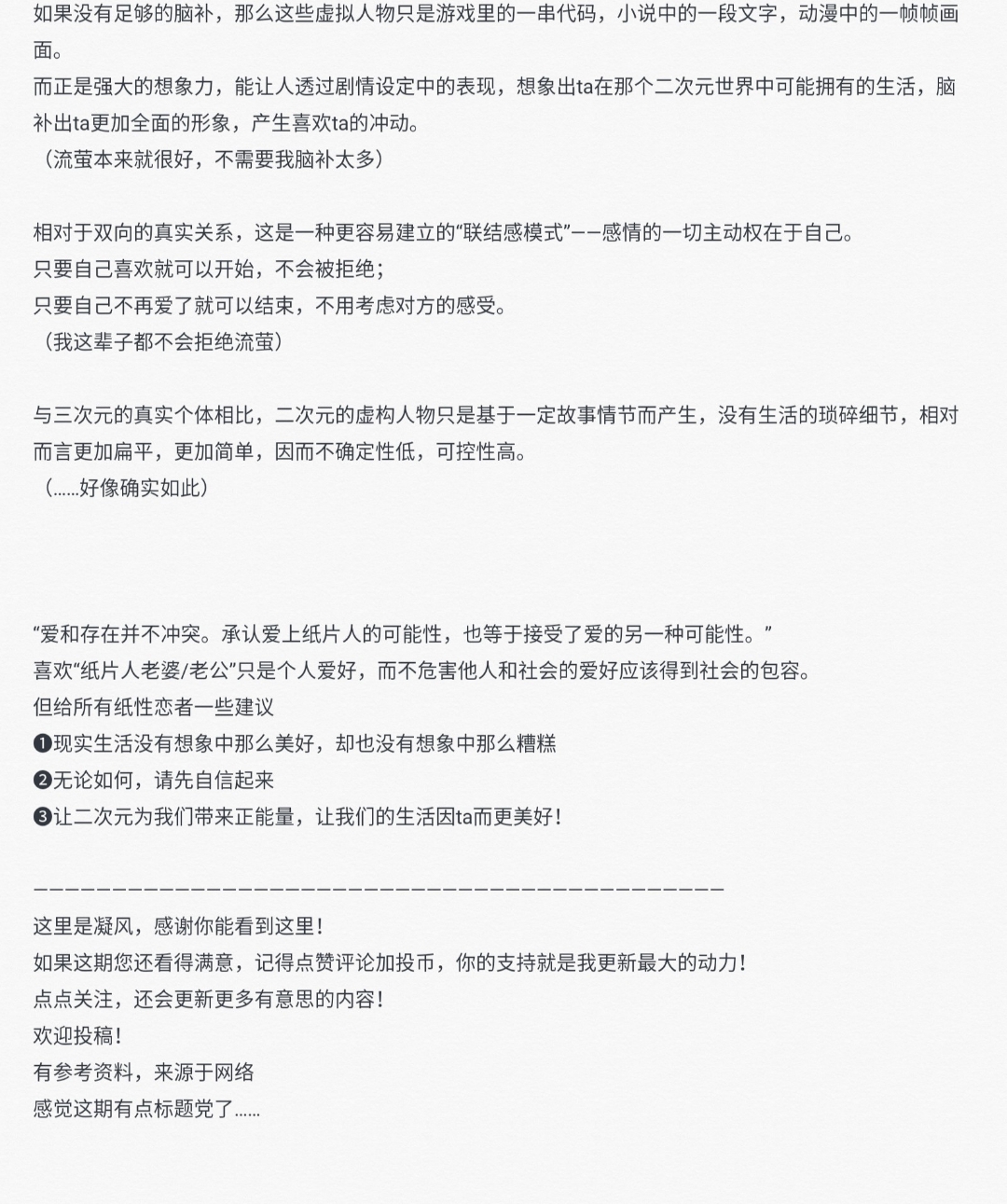 而正是强大的想象力,能让人透过剧情设定中的表现,想象出ta在那个二次元世界中可能拥有的生活,脑补出ta更加全面的形象,产生喜欢ta的冲动。