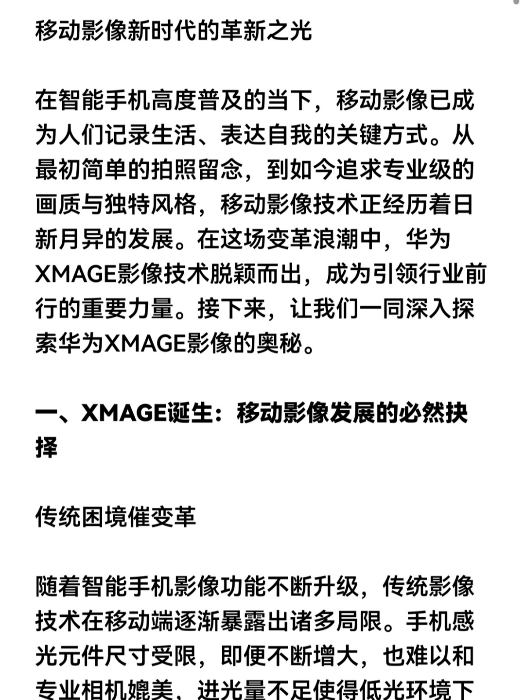 在智能手机高度普及的当下,移动影像已成为人们记录生活、表达自我的关键方式。从最初简单的拍照留念,到如今追求专业级的画质与独特风格,移动影像技术正经历着日新月异的发展。在这场变革浪潮中,华为XMAGE影像技术脱颖而出,成为引领行业前行的重要力量。接下来,让我们一同深入探索华为XMAGE影像的奥秘。