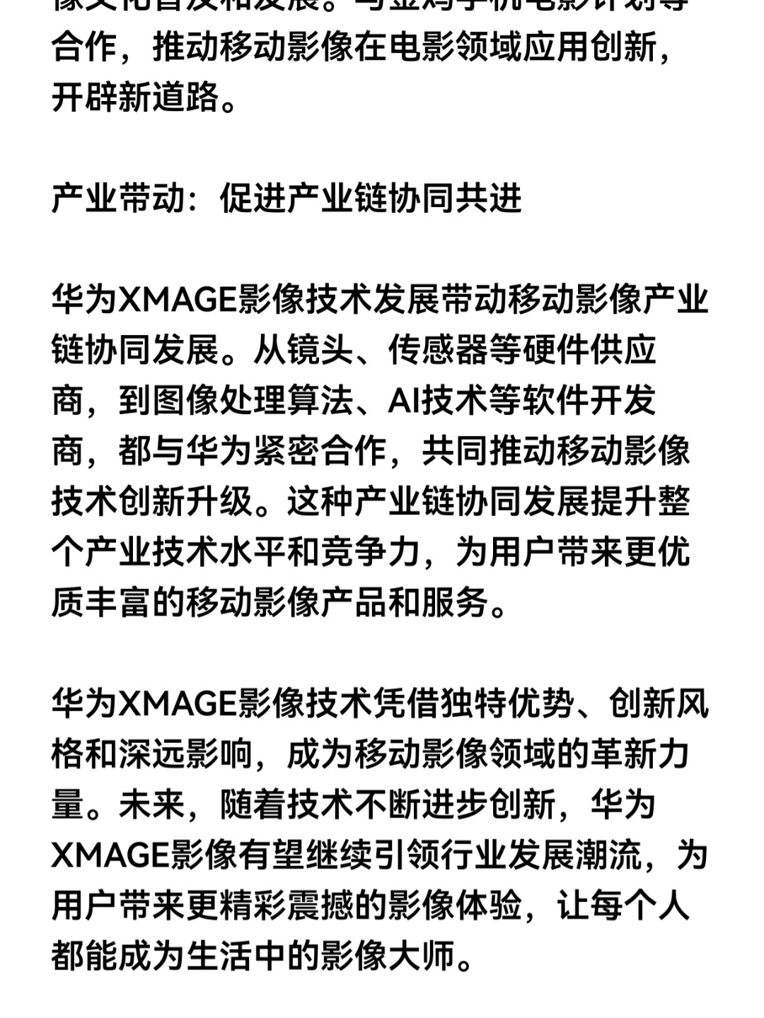 华为XMAGE影像技术凭借独特优势、创新风格和深远影响,成为移动影像领域的革新力量。未来,随着技术不断进步创新,华为XMAGE影像有望继续引领行业发展潮流,为用户带来更精彩震撼的影像体验,让每个人都能成为生活中的影像大师。