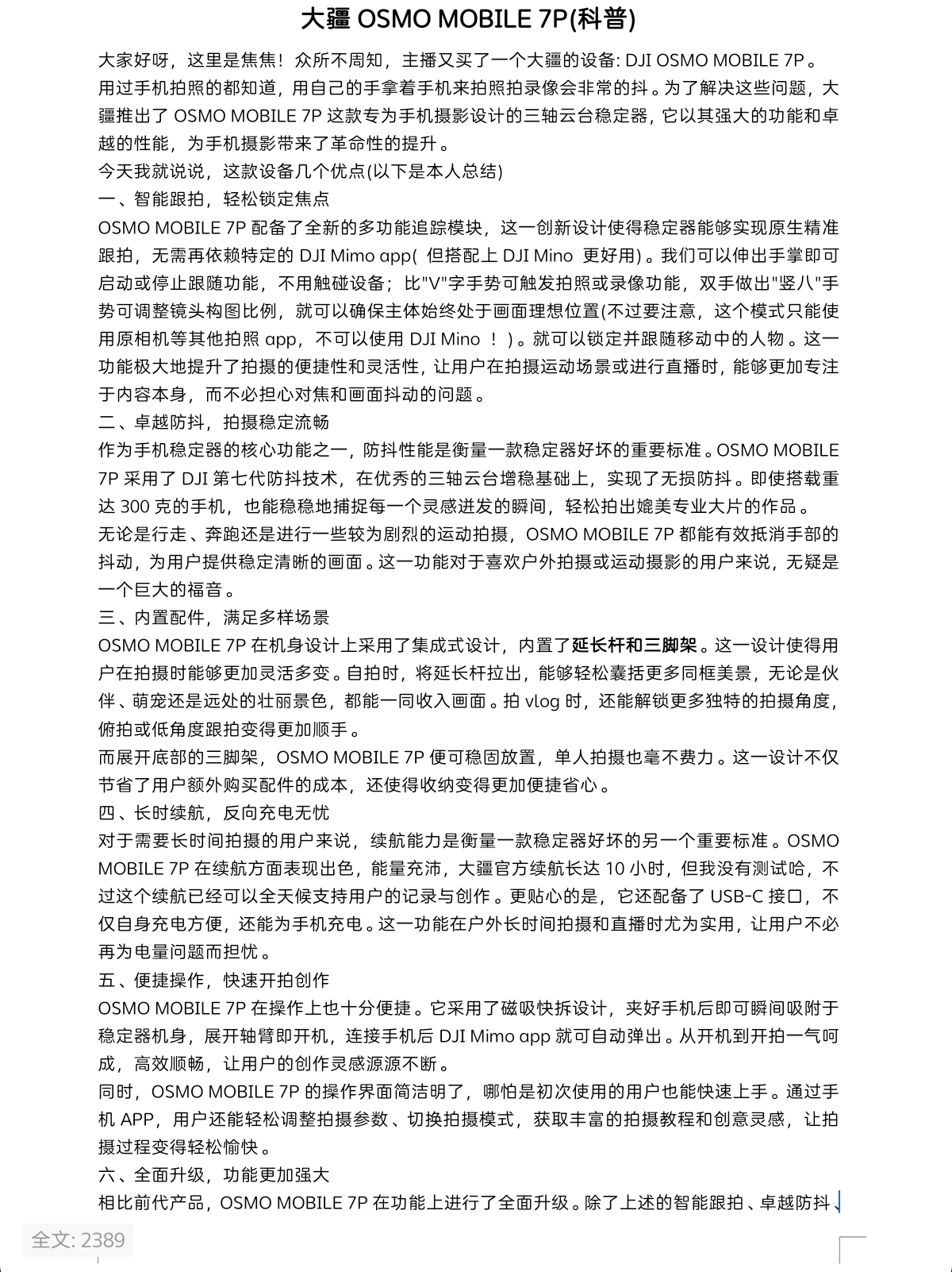 大家好呀,这里是焦焦!众所不周知,主播又买了一个大疆的设备: DJI OSMO MOBILE 7P。