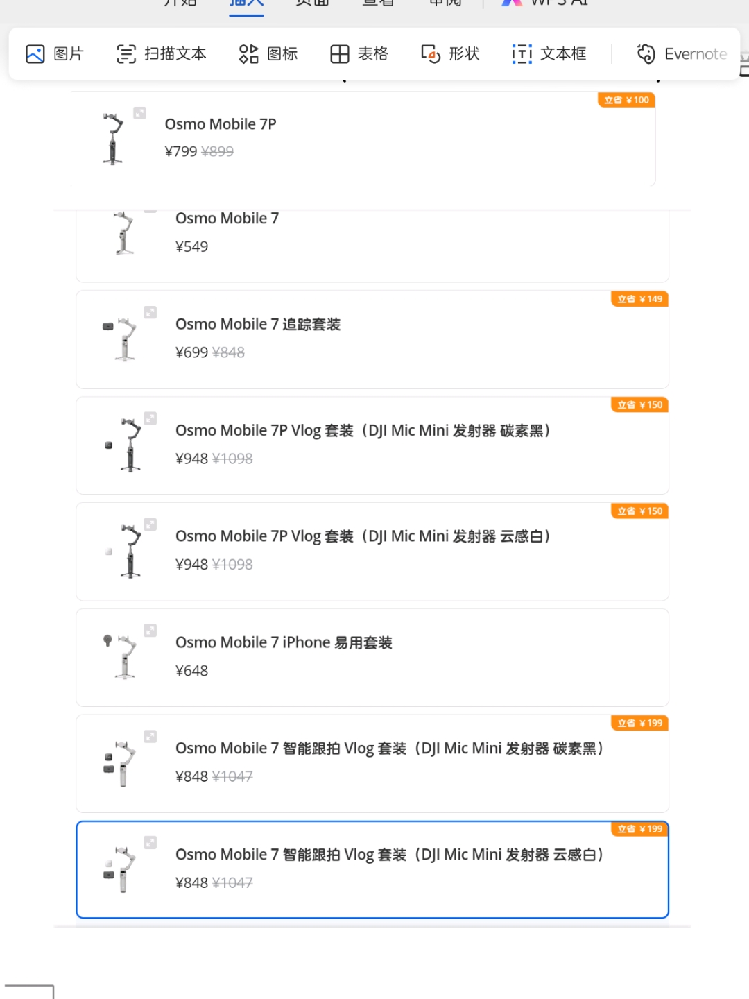 最后列举一下价格:(此图片来自大疆商城)(此部分请见图片P3)